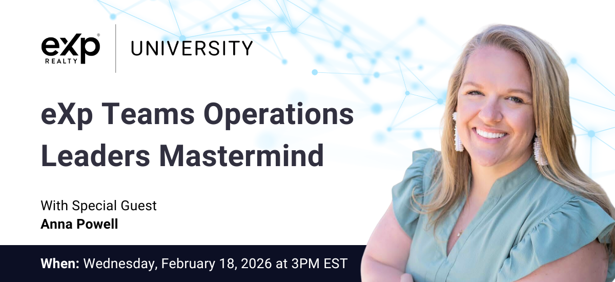 Join the Operations leaders of the most successful teams at eXp as we explore what's working today for teams. Systems, Tech, Lead Conversion Strategies, and more!